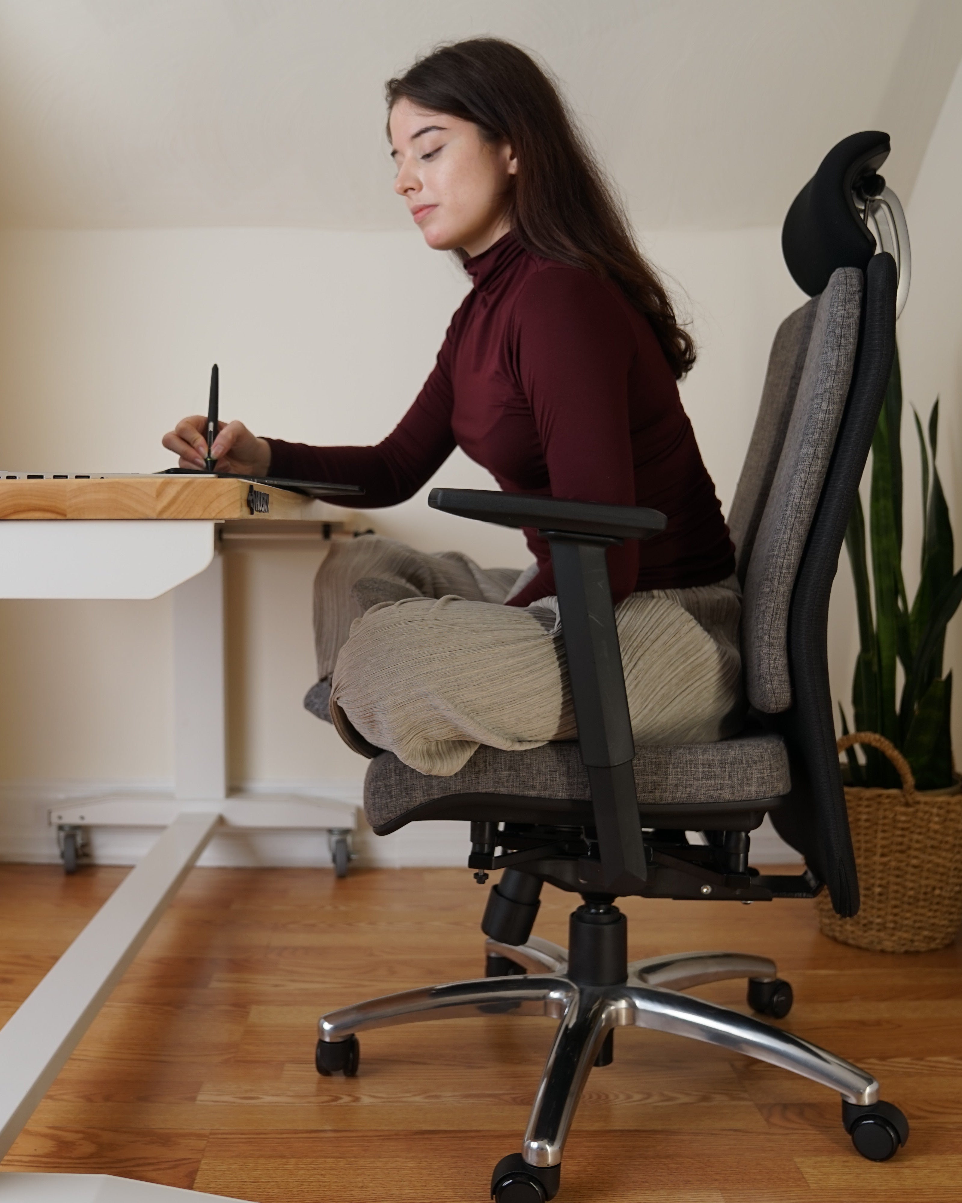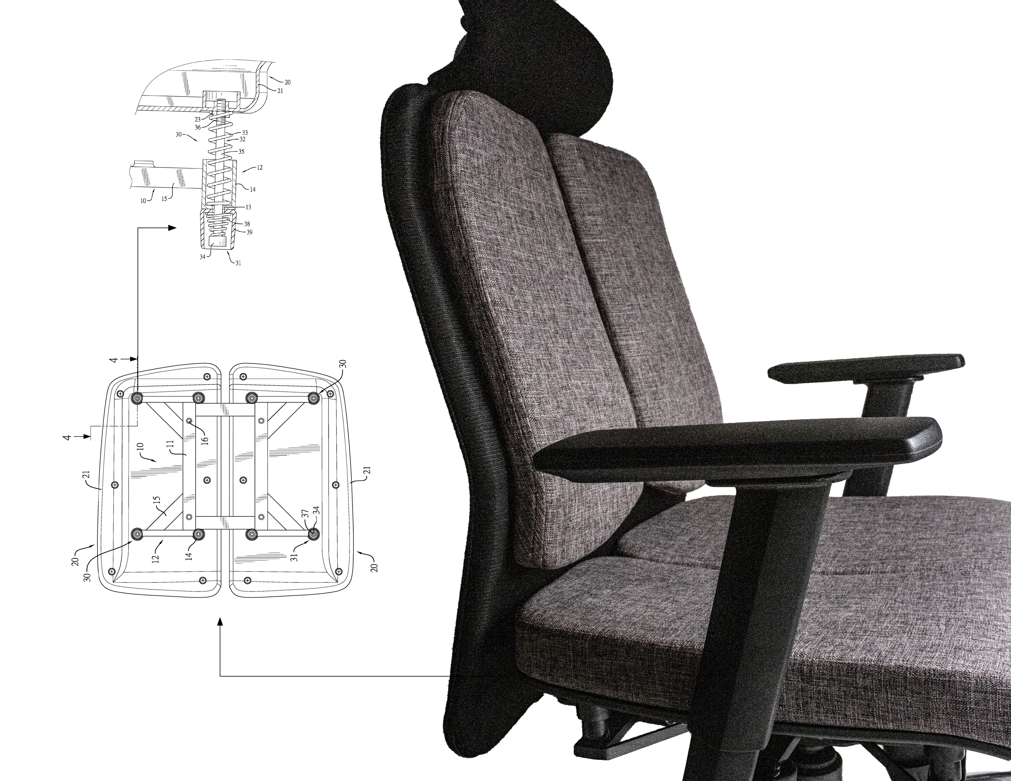 Experience comfort with a gap between dual pads that relieves pressure for both the tailbone and spine. Integrated with a spring mechanism that encourages circulation, active sitting and balanced alignment.