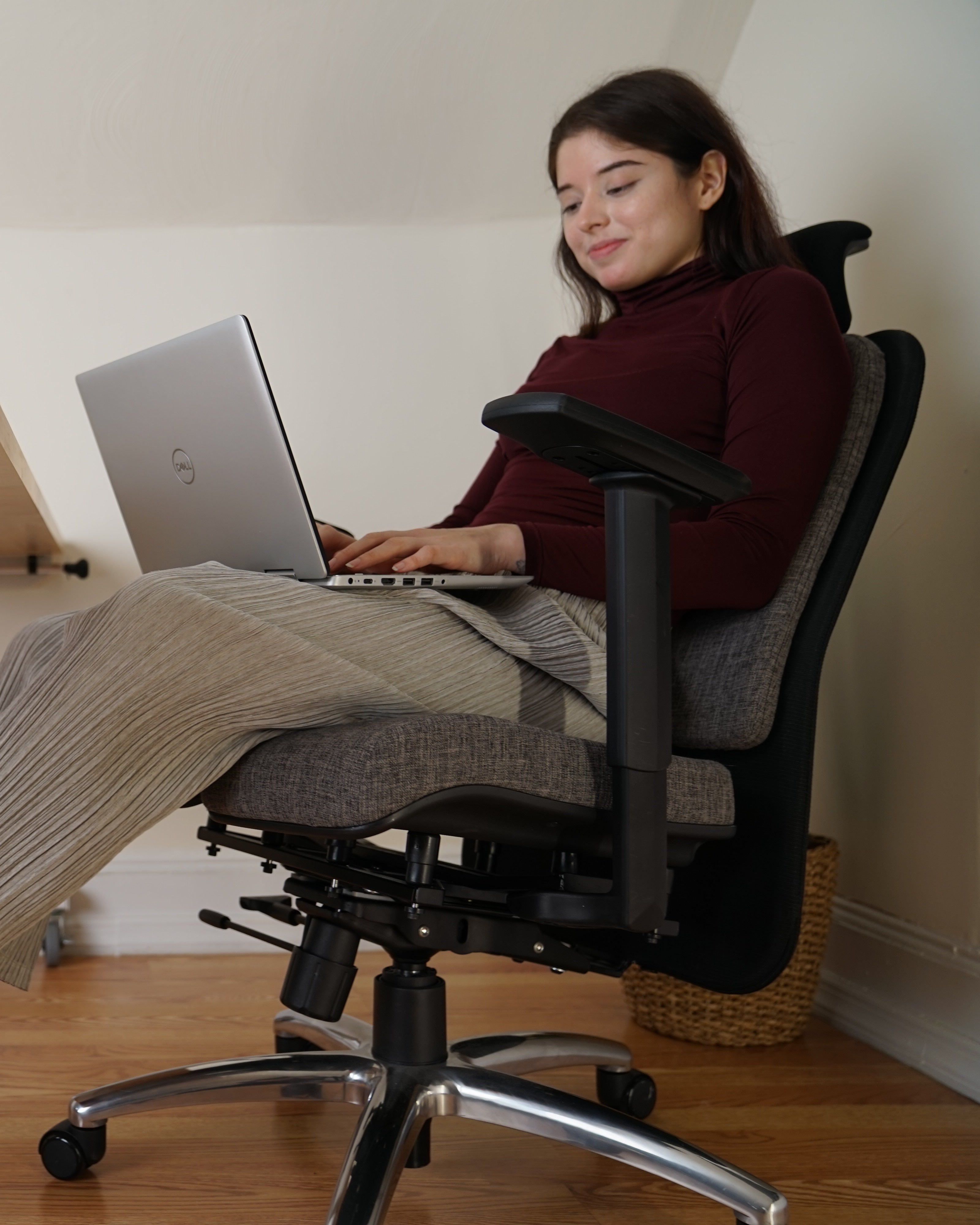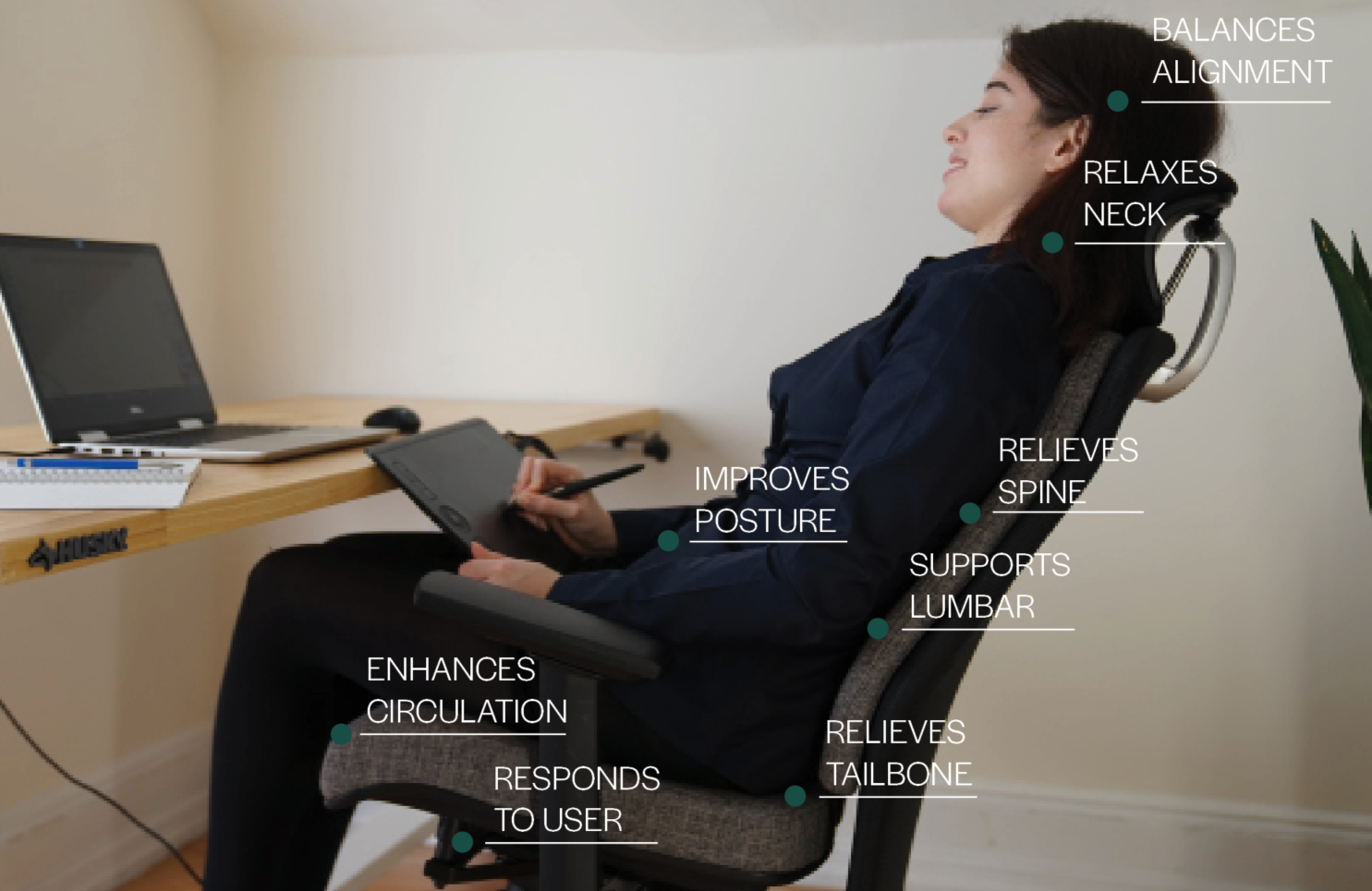 5+ modes of adjustability with a responsive spring mechanism and hidden inner elastic adapts to each user for gentle support and ease in movement.